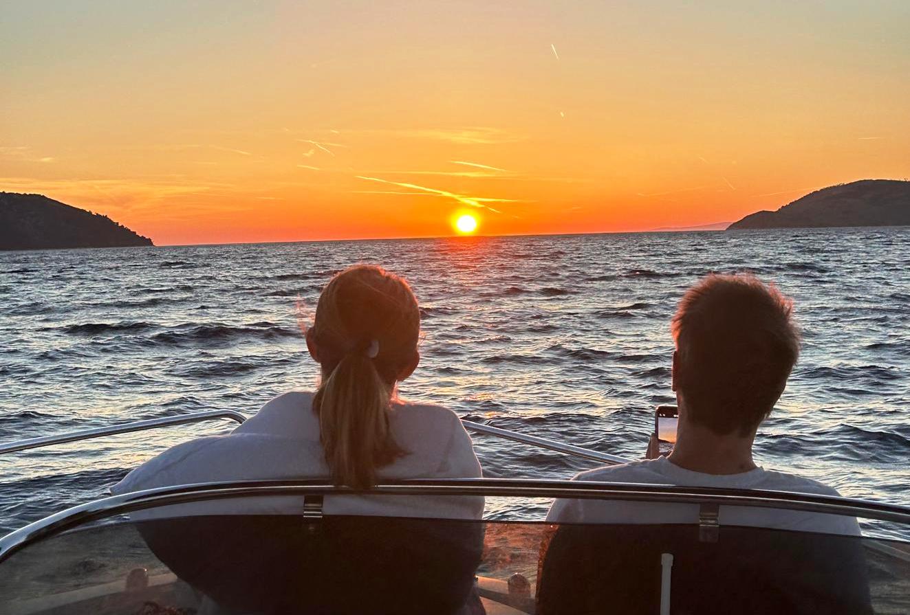 Guests can choose to watch the sunset from the boat, fully relaxed, or swim in the calm, turquoise waters as the sun slowly disappears on the horizon.